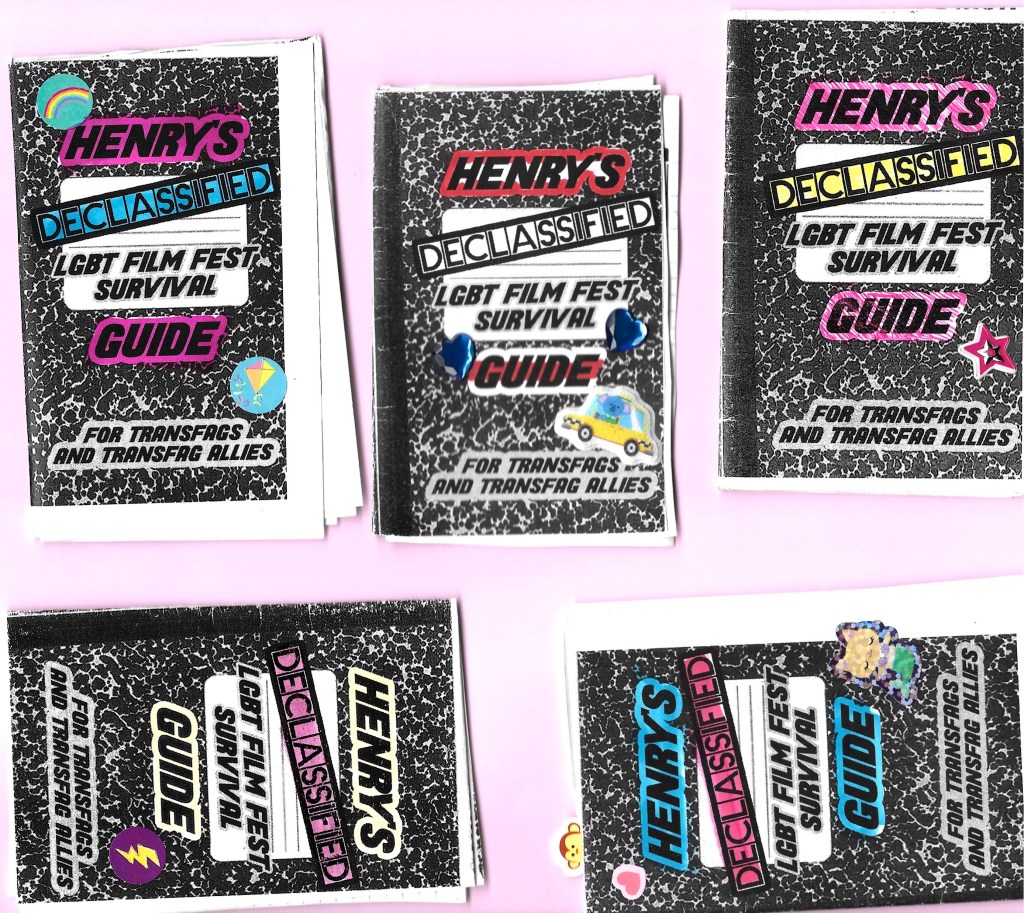 I have a love/hate relationship with (North American) LGBT fests but my short film Bros Before got into a few of them and I said yes because I just want it to get seen by anyone willing to watch it. I decided that if I was going to attend these film festivals, though, I was at least going to make a dumb, cheeky zine poking fun at them and leave them lying around everywhere. It’s mostly based on my experiences watching the trans shorts blocks at LGBT fests over the past several years (some of which ended up being the container for my film, lol). I thought it was really dumb and annoying how most of the shorts about being trans were, like, edutainment for cis people – all flawless heroes and suicidal melodrama. To be fair, it’s not entirely the fault of the film festivals. For reasons that are totally beyond me, many people have chosen to make movies like this. But I think that it’s impossible to separate trends in art from the gatekeepers of its distribution. So I’m gonna pick on the powerful institutions here instead of the artists.